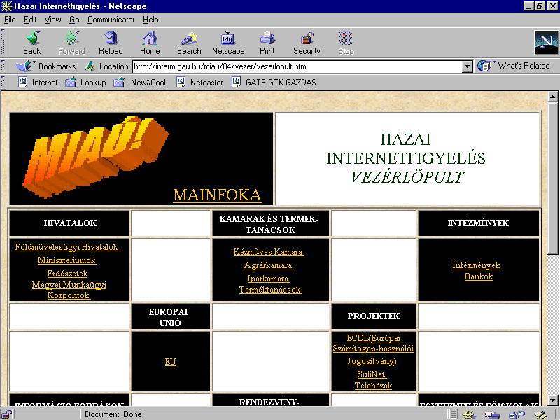 Magyar Internetes Agrárinformatikai Újság MIAÚ - HU ISSN 1419-1652 Magyar Internetes Agrárinformatikai Újság Medium on Internet for Agrarinformatics in hUngary |
